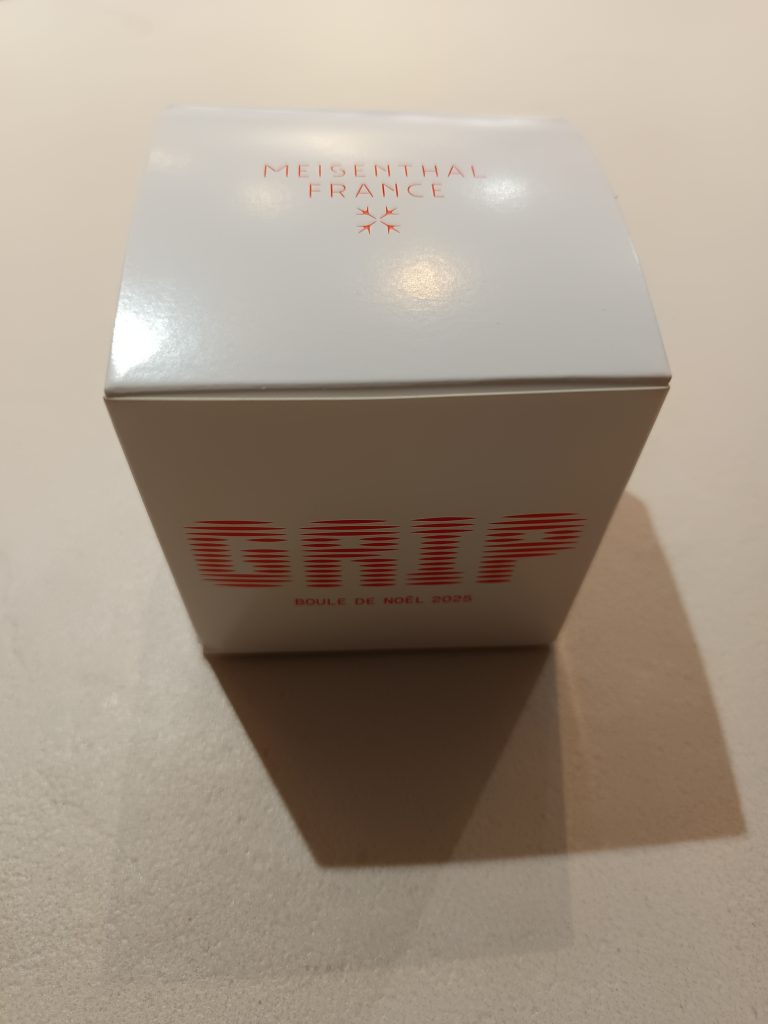 Créée par Lucas Lorigeon, la boule Grip imagine la fête comme un équilibre subtil : un objet précieux que l’on tient, que l’on protège, que l’on choisit avec soin. Ses stries horizontales évoquent une prise en main assurée, un antidote discret à la glissade. Le nom lui-même raconte un langage de vigilance, celui d’un geste attentionné : « mieux vaut prévenir que guérir ». Cette édition 2025 rappelle que l’ornement n’est pas seulement décoratif, mais porteur d’une attention au monde. Sa texture, entre douceur et accroche, capte la lumière autrement, comme si chaque reflet cherchait à retenir le mouvement de la main. La fête, ici, se cueille avec délicatesse.