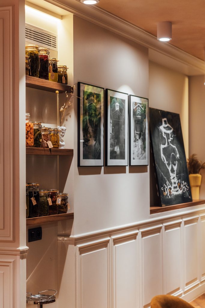 L’originalité de Maison Mère s’exprime avec subtilité dans son concept de galerie permanente et d’espaces culturels évolutifs. Tous les six mois, des artistes locaux investissent les couloirs, créant une exposition dynamique qui donne à l’hôtel une âme vivante, loin de la décoration figée des lieux traditionnels. Sur les étagères du lobby comme dans les chambres, objets d’art et créations artisanales dialoguent avec élégance. Beaucoup d’éléments sont sélectionnés chez des créateurs du quartier, certains même disponibles à la vente, tissant un lien authentique avec le territoire et soutenant la scène artistique parisienne. Ce foisonnement culturel nourrit l’identité de Maison Mère comme un point de rencontre entre hôtes et habitants, favorisant créativité et échange.