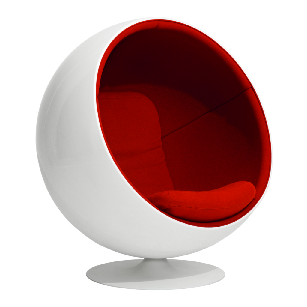 Un demi-globe blanc, un intérieur feutré : la Ball Chair d’Eero Aarnio, dessinée en 1963, transforme le design en expérience sensorielle. Assis dans sa coque, on s’isole du monde, comme dans une bulle d’écoute, un espace suspendu où le son s’amortit et la pensée s’étire.