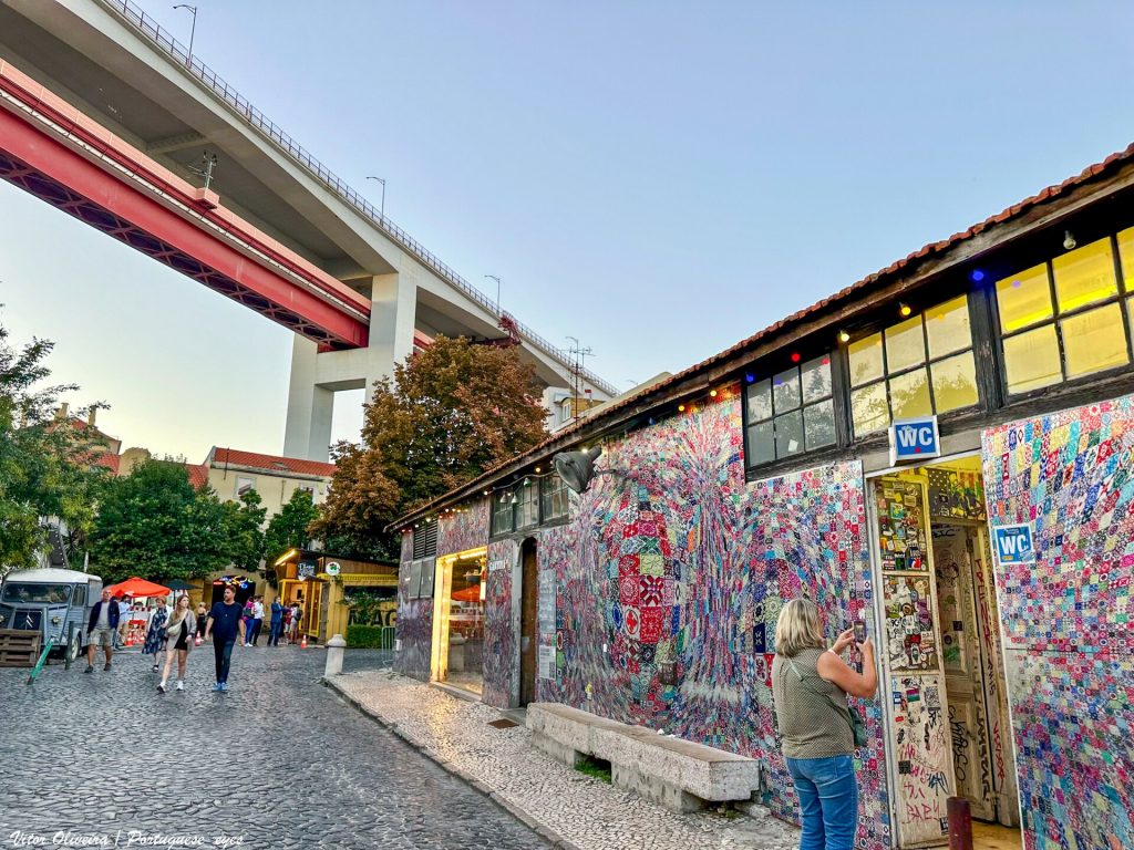 Former textile industrial complex turned creative space with shops, restaurants, street art and Ler Devagar bookshop.